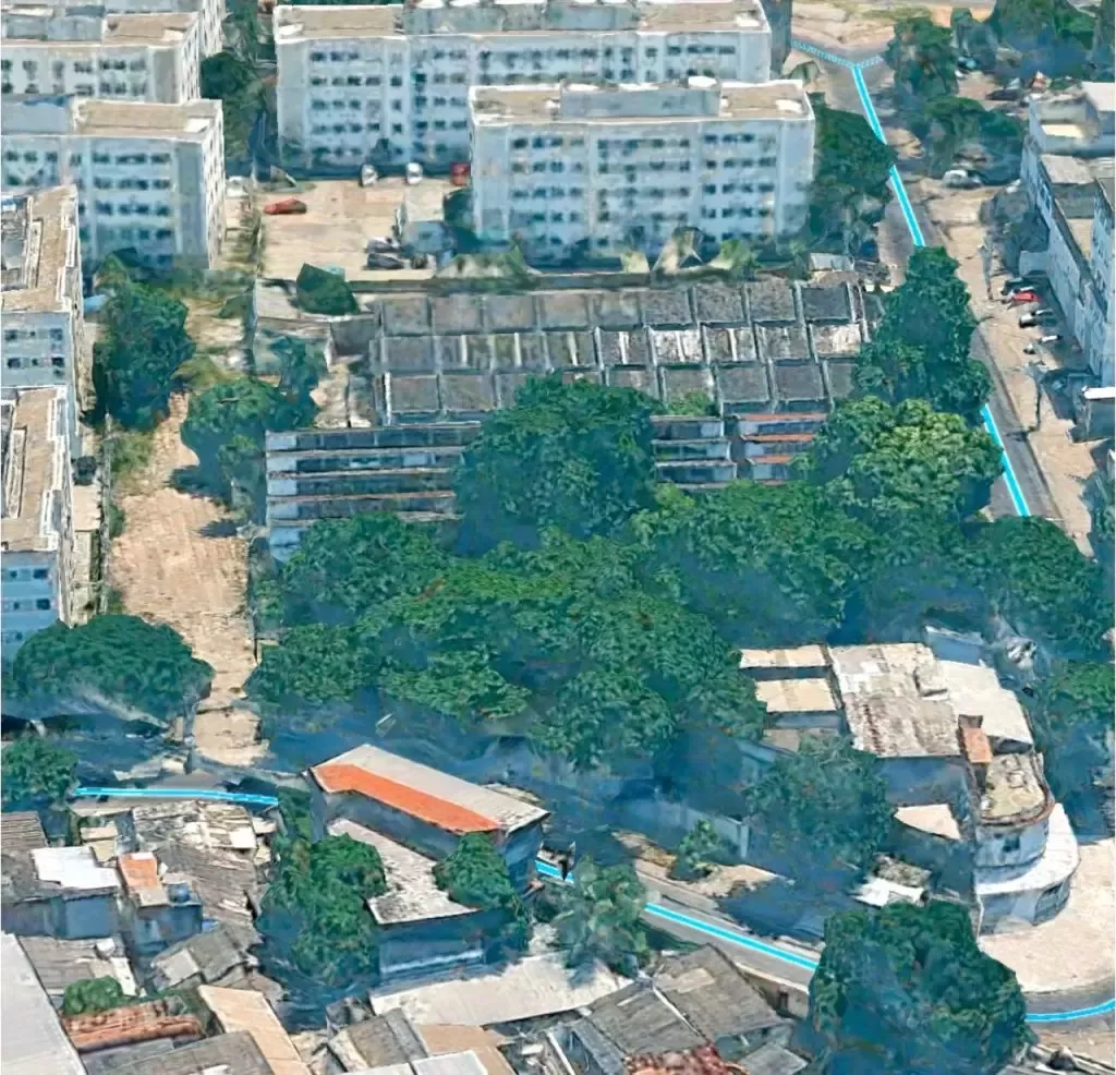 O terreno fica na Rua Cordovil, 436, às margens da Avenida Brasil, uma das vias mais movimentadas do Rio. Ele foi cedido pela construtora MRV à Prefeitura como compensação por benefícios urbanísticos obtidos em outros empreendimentos.